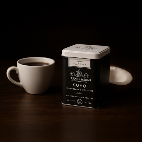 Vă prezentăm uimitorul nostru amestec de ceai SoHo creat pentru a sărbători deschiderea noului magazin Harney & Sons din Manhattan, New York. Acest amestec aromat de ceaiuri negre a fost creat de managerul magazinului, Emeric Harney. Ceaiul nostru SoHo este un amestec incredibil de delicios de ceai negru, ciocolată, nucă de cocos, vanilie și flori de leuștean.
