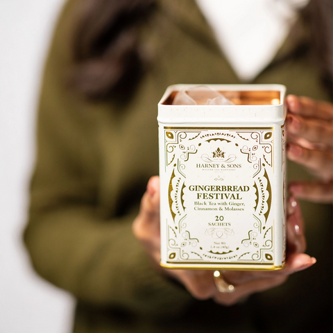 Gingerbread Festival is a sweet, warmly spiced black tea with the flavor of homemade gingerbread. Ginger, cinnamon, vanilla, cloves, and a light touch of molasses create a rich, festive drink that warms the body and soul.